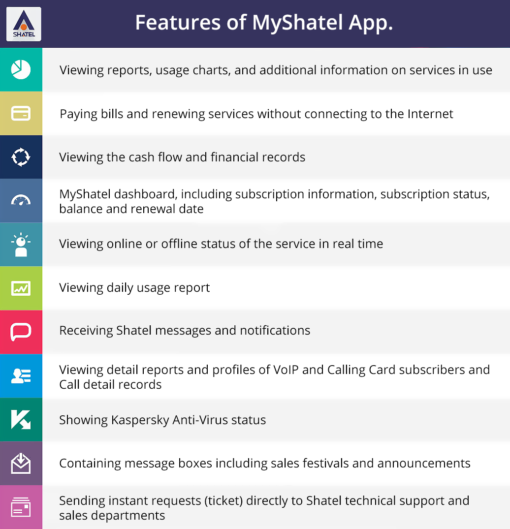 Myshatel App. is an application for users of Shatel high-speed Internet service which enables them to benefit from services offered on My.Shatel.ir website on their smart phones and devices. The new version of this software can be installed and used on Android 5 and higher. To download this software, you can visit Google Play, Cafe Bazaar, or Myket (for Android version).