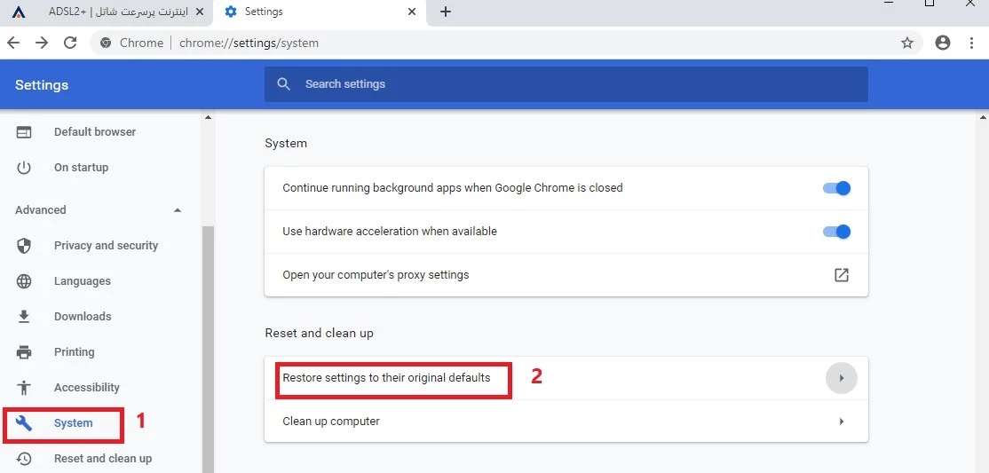 برای بازگرداندن تنظیمات مرورگر کروم به حالت پیش فرض مراحل زیر را انجام دهید.