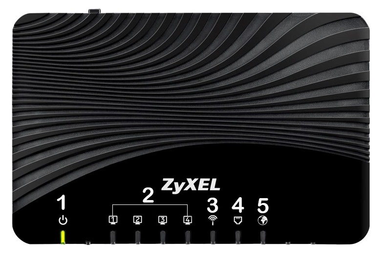 در صورت وایرلس بودن مودم ZyXEL ترتیب و نوع چراغهای مودم تا حدودی متفاوت است.