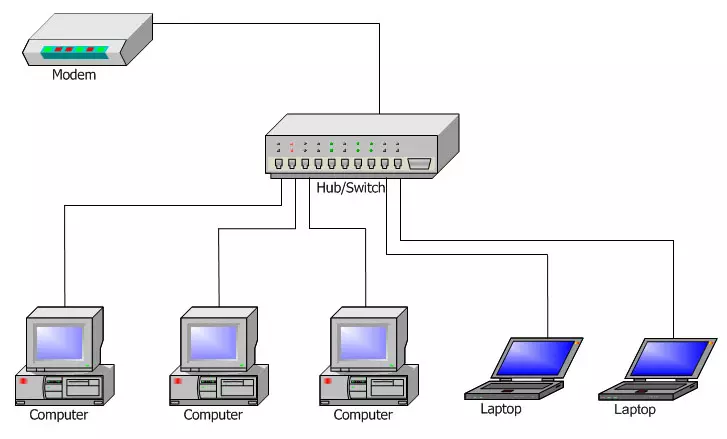 سپس این سیستم باید به Hub ،Switch یا Access Point وصل شود تا سرویس اینترنت در شبکه برقرار شود.
