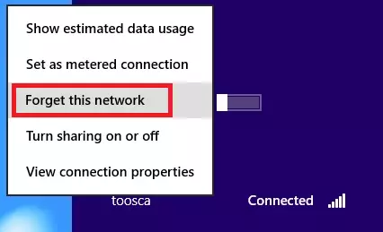 در فهرست شبکهها روی شبکه مورد نظر کلیک راست و گزینه Forget this network انتخاب کنید.