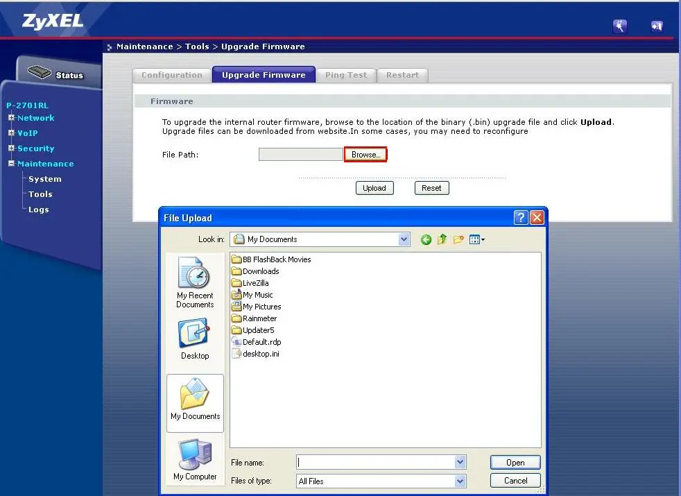 فایل P-270 1RL را از قسمت ZyXEL Firmware که در سایت شاتل قرار داده شده است، دانلود و روی سیستم خود ذخیره کنید.