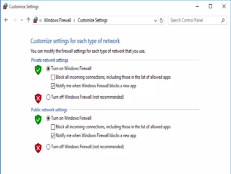 برای فعال بودن Firewall باید گزینه On و برای غیرفعال بودن Firewall گزینه Off انتخاب شود.