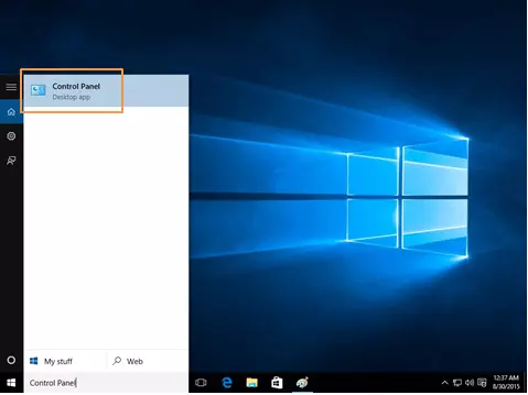 برای انجام تنظیمات Firewall در ویندوز 10 ابتدا باید وارد Control Panel شوید، برای این منظور در قسمت Search The Web And Windows گزینه Control Panel را تایپ کنید تا گزینه مورد نظر به نمایش گذاشته شود و وارد Control Panel شوید.