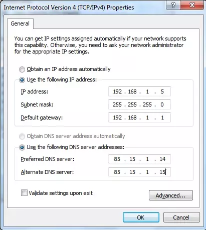 DNSهای ست شده در این قسمت ۸۵.۱۵.۱.۱۴ و ۸۵.۱۵.۱.۱۵ است.