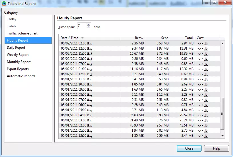 در قسمتهای بعد نیز میتوانید استفاده از ترافیک را در (ساعتها، ماهها، هفتهها یا روزهای جداگانه) مشاهده کنید.