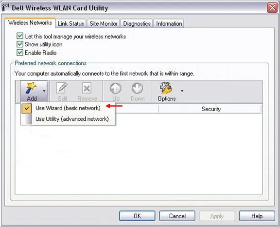 برای تنظیمات وایرلس لپتاپ DELL و متصل شدن به روتر یا Access Point در تنظیمات Dell Wireless Utility مراحل زیر را اجرا کنید: