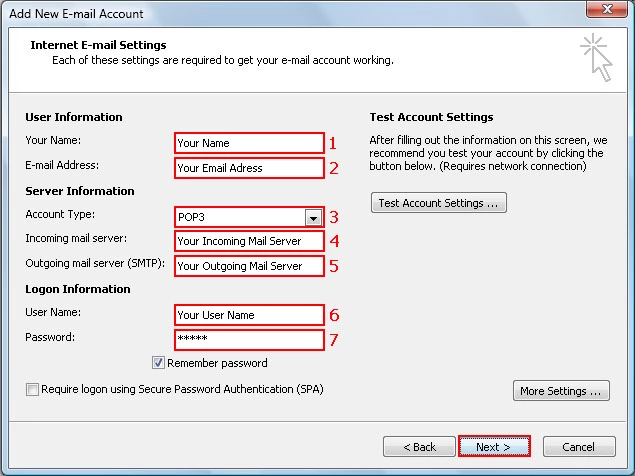 - در قسمت User Name نام کاربری Account برای ورود به Mail Server را وارد کنید.
